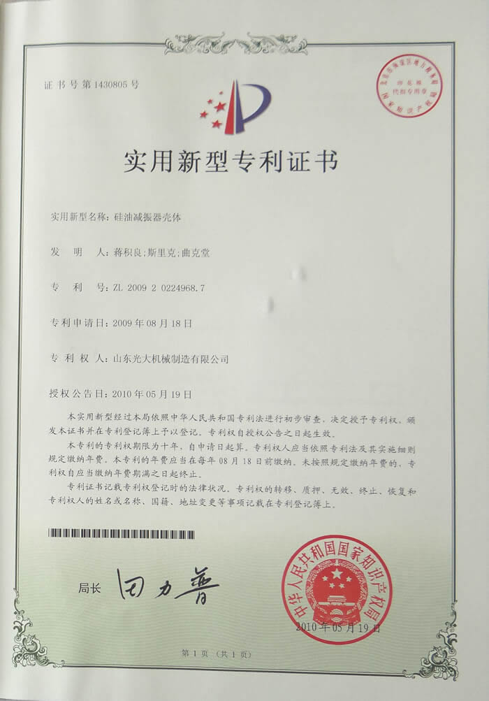 Silicone oil shock absorber case - utility model patent certificate
